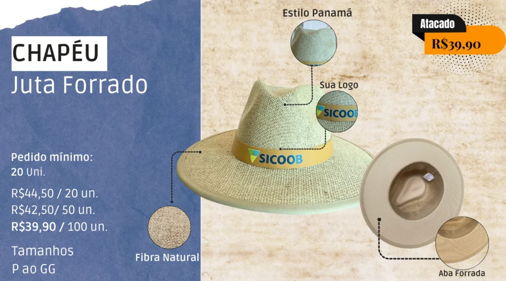 • Chapéu Produtor – opção com ótimo custo x benefício para feiras e eventos.